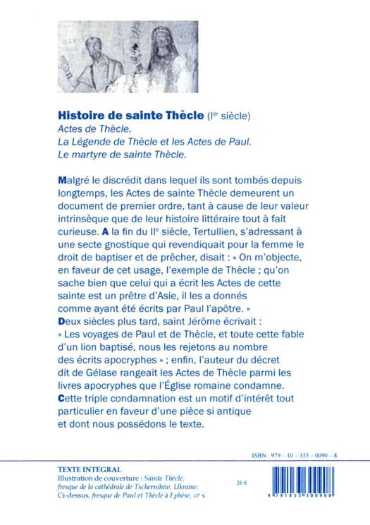 Le volume comprend : 1. Les Actes de sainte Thècle. - 2. La légende de sainte Thècle et les Actes de Paul. - 3. Le Martre de sainte Thècle.