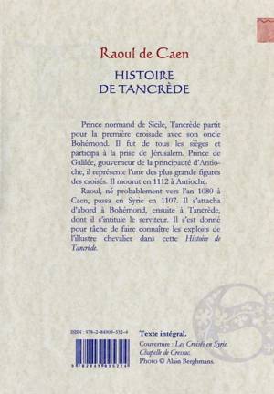 Prince normand de Sicile, Tancrède partit pour la première croisade avec son oncle Bohémond. Il fut de tous les sièges et participa à la prise de Jérusalem. Prince de Galilée, gouverneur de la principauté d'Antioche, il représente l'une des plus grande figures des croisés. Il mourut en 1112 à Antioche.