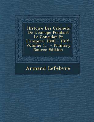 This is a reproduction of a book published before 1923. This book may have occasional imperfections such as missing or blurred pages, poor pictures, errant marks, etc. that were either part of the original artifact, or were introduced by the scanning process. We believe this work is culturally important, and despite the imperfections, have elected to bring it back into print as part of our continuing commitment to the preservation of printed works worldwide. We appreciate your understanding of the imperfections in the preservation process, and hope you enjoy this valuable book. ++++ The below data was compiled from various identification fields in the bibliographic record of this title. This data is provided as an additional tool in helping to ensure edition identification: ++++ Histoire Des Cabinets De L'Europe Pendant Le Consulat Et L'Empire: 1800 - 1815, Volume 1 Armand Lefebvre Gosselin, 1845