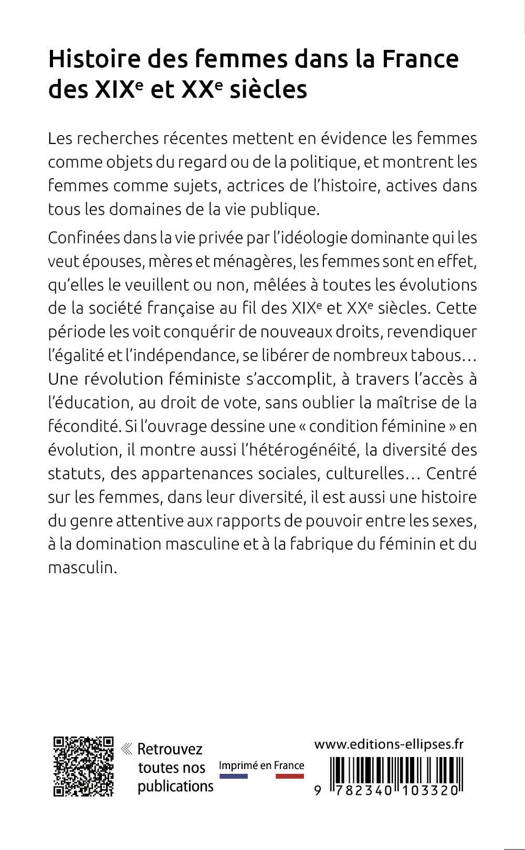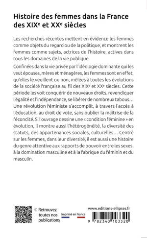 Confinées dans la vie privée par l’idéologie dominante qui les veut épouses, mères et ménagères, les femmes sont en effet, qu’elles le veuillent ou non, mêlées à toutes les évolutions de la société française au fil des XIXe et XXe siècles. Cette période les voit conquérir de nouveaux droits, revendiquer l’égalité et l’indépendance, se libérer de nombreux tabous… Une révolution féministe s’accomplit, à travers l’accès à l’éducation, au droit de vote, sans oublier la maîtrise de la fécondité. Si l’ouvrage dessine une « condition féminine » en évolution, il montre aussi l’hétérogénéité, la diversité des statuts, des appartenances sociales, culturelles… Centré sur les femmes, dans leur diversité, il est aussi une histoire du genre attentive aux rapports de pouvoir entre les sexes, à la domination masculine et à la fabrique du féminin et du masculin.