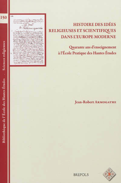 Pendant plus de quarante ans, Jean-Robert Armogathe, titulaire de la chaire « Histoire des idées religieuses et scientifiques dans l'Europe moderne », a publié dans l'Annuaire de l'École pratique des hautes études un résumé annuel de ses conférences hebdomadaires à la section des sciences religieuses. S'appuyant sur des documents rares ou inédits, tirant parti de recherches internationales souvent originales, cet ensemble contient à la fois une somme de connaissances sur les origines de l'Europe moderne dans leurs composantes philosophiques, théologiques et scientifiques et de nombreuses suggestions de recherches. De la théologie du concile de Trente à la théorie de la vision oculaire, l'ouvrage aborde les thèmes principaux de la réflexion philosophique, religieuse et scientifique du XVIe au XVIIIe siècle ; si l'on y rencontre les noms les plus connus de cette période fondamentale dans la formation de la pensée occidentale moderne (Bellarmin, Descartes, Leibniz, Bayle et bien d'autres), l'ouvrage met également en valeur l'apport de penseurs moins connus (Paolo Sarpi, Giulio Cesare Vanini Franciscus Gomarus, Zeger-Bernhard van Espen et d'autres). Complété par la liste des trois cents publications scientifiques qui ont accompagné son enseignement, enrichi d'un index analytique des matières et des noms (plus de huit cents entrées), ce volume constitue de la sorte une introduction savante et claire à ce champ de recherches.