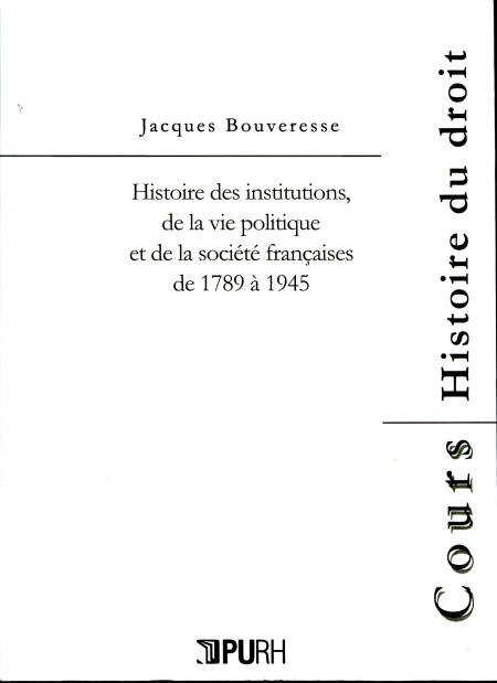 Jacques Bouveresse est professeur d’histoire du droit à la faculté de droit de l’université de Rouen. Outre de très nombreux articles, il est notamment l’auteur de deux ouvrages publiés aux Presses universitaires de France dans la collection « Droit fondamental » : Droit du développement et de la coopération (1990) et Introduction historique au droit du travail (1996). Il a aussi écrit un grand ouvrage sur l’Algérie coloniale, publié par les PURH : Un parlement colonial ? Les Délégations financières algériennes 1898-1945, I, L’Institution et les hommes (2008) ; II, Le déséquilibre des réalisations (2010).