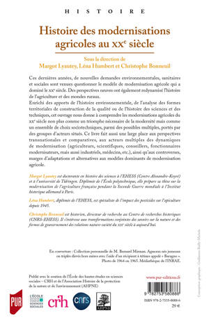 Enrichi des apports de l’histoire environnementale ou de l’histoire des sciences et des techniques, cet ouvrage donne à comprendre les modernisations agricoles du XXe siècle non plus comme un triomphe nécessaire de la modernité mais comme un ensemble de choix sociotechniques, parmi des possibles multiples, portés par des groupes d’acteurs. Il fait aussi une large place aux perspectives transnationales et comparatives, aux acteurs (agriculteurs, scientifiques, conseillers, fonctionnaires modernisateurs, mais aussi industriels, médecins, etc.), ainsi qu’aux controverses, marges d’adaptations et alternatives aux modèles dominants de modernisation agricole.
