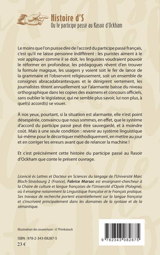 Le moins que l'on puisse dire de l'accord du participe passé français, c'est qu'il ne laisse personne indifférent : les puristes aiment à le voir appliquer comme il se doit, les linguistes voudraient pouvoir le réformer en profondeur, les pédagogues rêvent d'en trouver la formule magique, les usagers y voient soit le fer de lance de la grammaire, soit un ensemble de consignes abracadabrantesques, les journalistes titrent annuellement sur l'alarmante baisse du niveau orthographique dans les copies des examens. Le système d'accord du participe passé peut-il être sauvegardé ? Et à quelles conditions ?