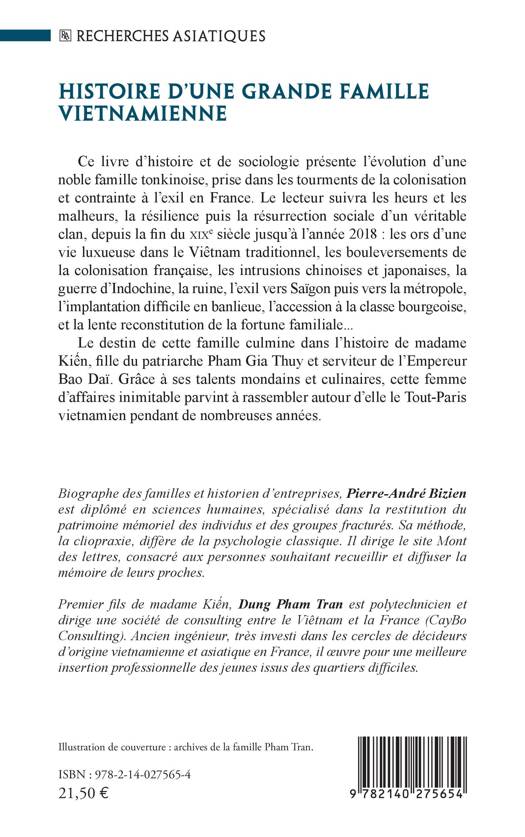 Le destin de cette famille culmine dans l'histoire de madame Kiên, fille du patriarche Pham Gia Thuy et serviteur de l'Empereur Bao Daï. Grâce à ses talents mondains et culinaires, cette femme d'affaires inimitable parvint à rassembler autour d'elle le Tout-Paris vietnamien pendant de nombreuses années.