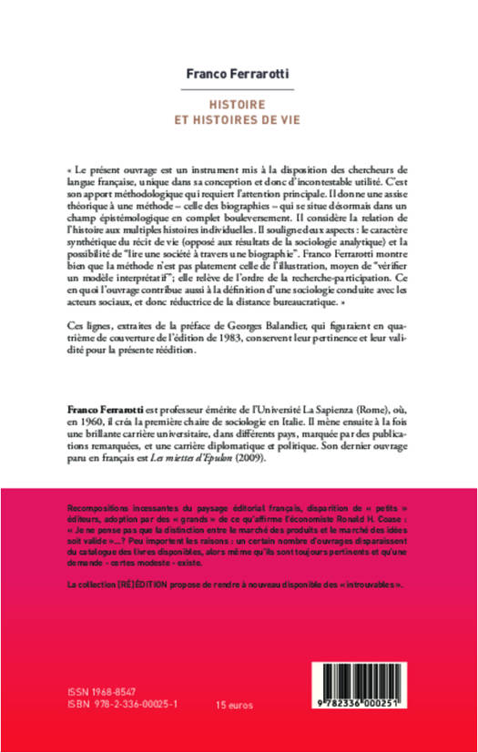 Précurseur lors de sa première publication, en traduction française, de 1983, cet ouvrage demeure une référence trente ans après. Et ce qu'écrivait Georges Balandier dans sa préface à l'édition originale est toujours aussi pertinent : " Le présent ouvrage (...) donne une assise théorique à une méthode - celle des biographies - qui se situe désormais dans un champ épistémologique en complet bouleversement. Il considère la relation de l'Histoire aux multiples histoires individuelles...".