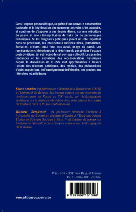 Dans l'espace postsoviétique, la quête d'une nouvelle construction nationale et la légitimation des nouveaux pouvoirs s'est appuyée sur une réécriture du passé et une réinterprétation de faits ou de personnages historiques. Si les dirigeants politiques jouent un rôle important dans ce processus, les intellectuels font aussi « usage » du passé. Les grandes tendances des représentations historiques depuis la chute du communisme sont appréhendées dans cet ouvrage collectif.