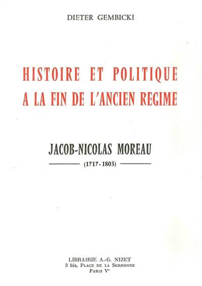Cet ouvrage se propose d'analyser les rapports entre l'histoire et la politique dans la seconde moitie du XVIIIe siecle, a travers le prisme d'une figure meconnue: Jacob-Nicolas Moreau (1717-1803). Historien, historiographe d'une France dont il revere le Regime monarchique, "anti-philosophe" des Lumieres, mais encore jurisconsulte, precepteur du futur Louis XVI, bibliothecaire et confident de Marie-Antoinette, Moreau a parcouru l'essentiel du XVIIIe siecle en restant dans les marges de l'observation historiographique la plus scrupuleuse, jouant de sa situation un peu "cryptique" pour echapper a la notoriete - qui deforme toujours l'ecrivain et son oeuvre - et, plus miraculeusement pour cet apologiste de l'Ancien Regime, a l'echafaud. Dieter Gembicki se concentre sur les faits, en considerant Jacob-Nicolas Moreau comme un simple "homme de son temps", dont les textes (la grande reussite de Moreau etant son invention d'un "depot des chartes", recueil des textes officiels de l'histoire nationale) constituent aujourd'hui une source precieuse pour tous les historiens de l'Ancien Regime finissant et de la Revolution.