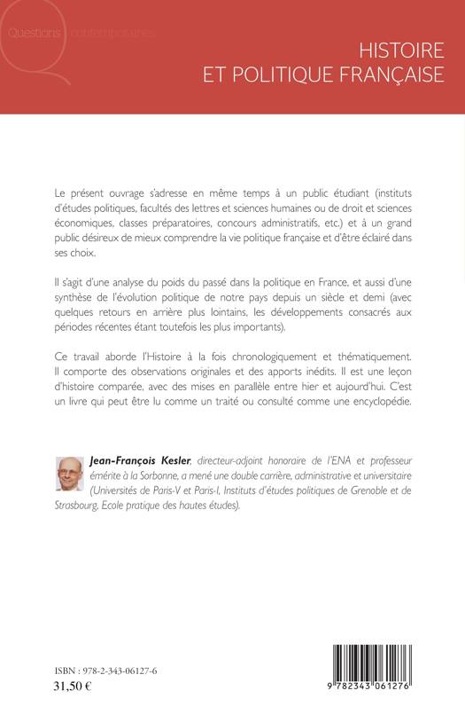 Destiné à un public étudiant et à un public désireux de mieux comprendre la vie politique française, cet ouvrage analyse le poids du passé dans la politique en France et constitue aussi une synthèse de l'évolution politique de notre pays depuis un siècle et demi. Ce travail aborde l'Histoire à la fois chronologiquement et thématiquement avec des mises en parallèle entre hier et aujourd'hui. Il peut être lu comme un traité ou consulté comme une encyclopédie.