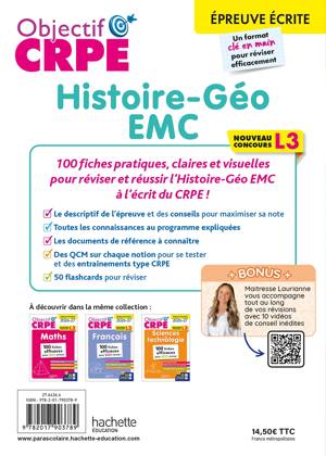 Nouveau concours L3 ! 100 fiches détachables claires et visuelles pour réviser et réussir l’épreuve écrite d'Histoire-Géographie-EMC au CRPE L3 !