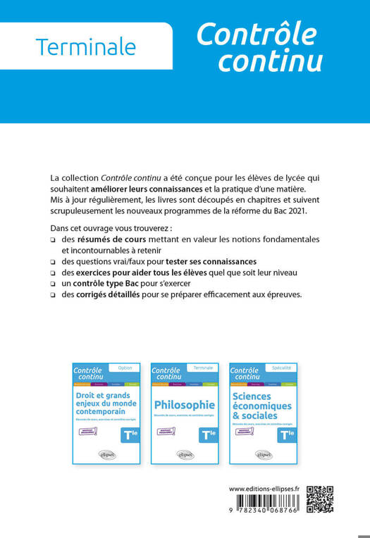 La collection Contrôle continu a été conçue pour les élèves de lycée qui souhaitent améliorer leurs connaissances et la pratique d'une matière.