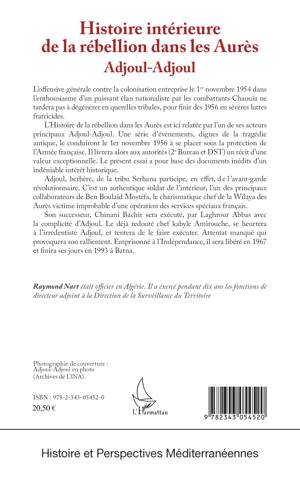 L'histoire de la rébellion dans les Aurès est ici relatée par l'un de ses acteurs principaux, Adjoul-Adjoul. Combattant de l'indépendance, il est l'un des collaborateurs de Mostefa Ben Boulaïd, Chihani Bachir et Laghrour Abbas. A la mort de Ben Boulaïd, que certains imputent à Adjoul, une véritable guerre de succession s'engage. Amirouche tente de faire exécuter Adjoul, qui se place alors sous la protection de l'armée française. Il livrera aux autorités (2e bureau et DST) un récit d'une valeur exceptionnelle sur ces événements.