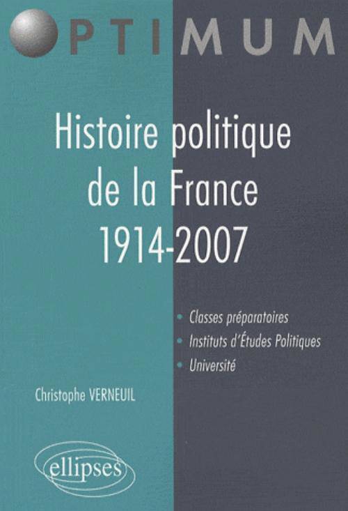 Analyser la vie politique des Français de manière simple et compréhensible pour tout un chacun, tel est le pari de ce manuel. Son but n’est pas de remplacer les nombreux ouvrages déjà publiés sur le même sujet. Notre objectif est de proposer aux lecteurs intéressés par le sujet, mais effrayés par l’abondance d’ouvrages, une synthèse claire, accessible et courte. Dans cette perspective, cette Histoire politique de la France depuis 1914 s’adresse à des lecteurs variés : étudiants d’histoire et de droit dans les universités, étudiants des Instituts d’études politiques, élèves des classes préparatoires aux grandes écoles littéraires et commerciales, candidats aux concours de l’Éducation nationale et de la Fonction publique. S’adressant à tous, cet ouvrage conjugue le récit, aussi clair que possible, des nombreux et complexes événements politiques de la France de 1914 à 2007, et l’explication de ces mêmes événements. Plus largement, cette Histoire politique de la France est adressée à toutes les personnes désireuses de connaître et de comprendre la vie politique de leur temps, en la replaçant dans la perspective du XXe siècle.