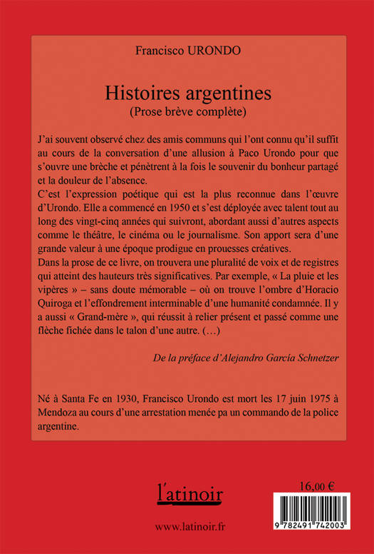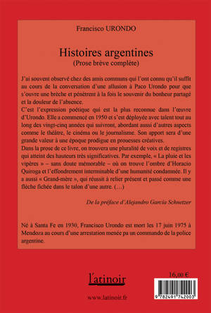 « Comme Rodolfo Walsh et Haroldo Conti, Fransisco Urondo a écrit jusqu'à la fin, au milieu des travaux, des urgences et des dangers de la vie clandestine. Pour ces piliers de la littérature nationale argentine il n'y eut jamais de contradictions entre la militance pour une patrie juste, libre et souveraine et la condition de l'écriture. Lorsqu'en ce temps de dépassion on se souvient des polémiques des années 1960 - certains prétendaient faire la révolution dans leur écriture , d'autres, abandonner leur écriture au nom de la révolution -, on perçoit dans toute sa magnitude ce que Fransisco, Rodolfo, Haroldo nous ont montré : la profonde unité d'une vie et d'une oeuvre qu'un écrivain et ses textes peuvent atteindre... » Juan Gelman