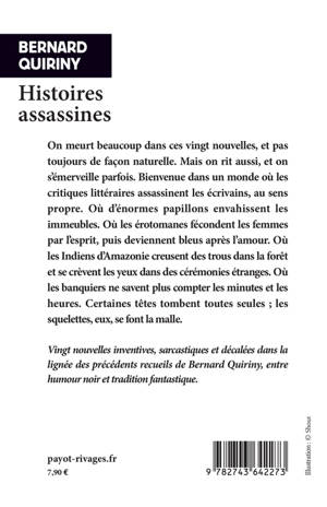 On meurt beaucoup dans ces vingt nouvelles, et pas toujours de façon naturelle. Mais on rit aussi, et on s'émerveille parfois. Bienvenue dans un monde où les critiques littéraires assassinent les écrivains, au sens propre. Où d'énormes papillons envahissent les immeubles. Où les érotomanes fécondent les femmes par l'esprit, puis deviennent bleus après l'amour. Où les Indiens d'Amazonie creusent des trous dans la forêt et se crèvent les yeux dans des cérémonies étranges. Où les banquiers ne savent plus compter les minutes et les heures. Certaines têtes tombent toutes seules ; les squelettes, eux, se font la malle.