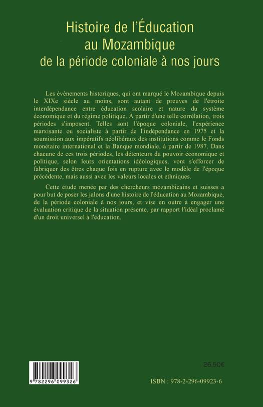 Les évènements historiques qui ont marqué le Mozambique depuis le XIXè siècle sont autant de preuves de l'étroite interdépendance entre éducation scolaire, nature du système économique et régime politique. Cet ouvrage pose les jalons d'une histoire de l'éducation au Mozambique, de la période coloniale à nos jours, et vise en outre à engager une évaluation critique de la situation présente, par rapport à l'idéal proclamé d'un droit universel à l'éducation.