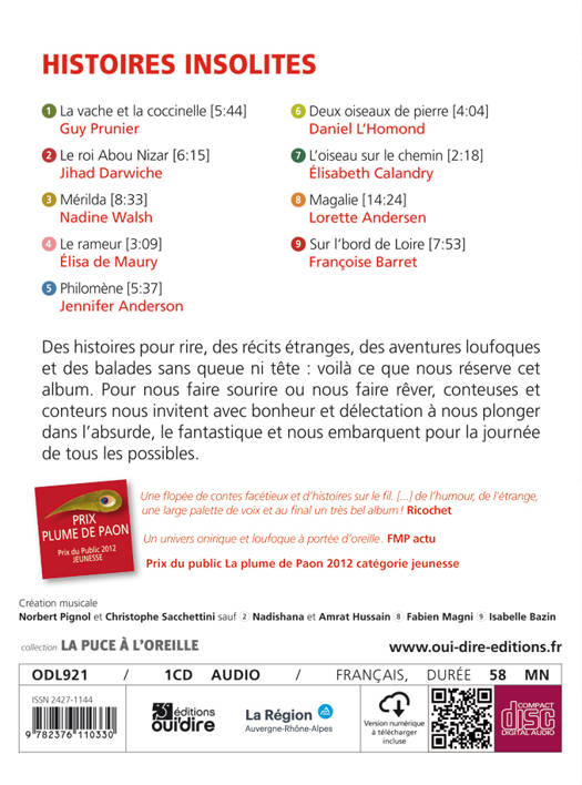 Des histoires pour rire, des récits étranges, des aventures loufoques et des balades sans queue ni tête : voilà ce que nous réserve ce disque. Pour nous faire sourire ou nous faire rêver, les conteurs nous invitent avec bonheur et délectation à nous plonger dans l'absurde, le fantastique, et nous embarquent pour la journée de tous les possibles.