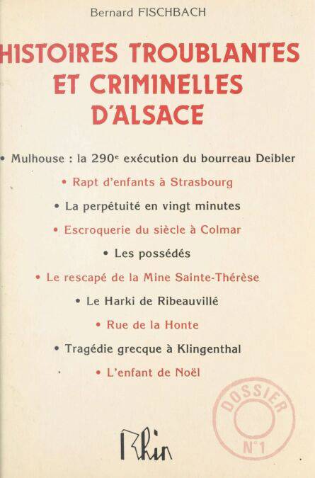 Certaines affaires criminelles ou « histoires étranges », de par leur origine, la personnalité des protagonistes, le déroulement du procès, le verdict, émeuvent et bouleversent l’opinion publique. Si bien qu’elles s’inscrivent dans l’Histoire sociologique de l’Alsace. Bernard Fischbach, journaliste, chargé dans le cadre de son activité professionnelle de la chronique judiciaire pendant 10 ans, s’efforce d’évoquer, dans cet ouvrage, une première série d’affaires retentissantes ou insolites ayant, à l’époque, défrayé la chronique alsacienne et même nationale. L’auteur, après des recherches approfondies et passionnantes, prépare un deuxième dossier, dans lequel il portera à la connaissance des lecteurs des affaires régionales méconnues, vraiment extraordinaires, parfois à la limite du surnaturel.
