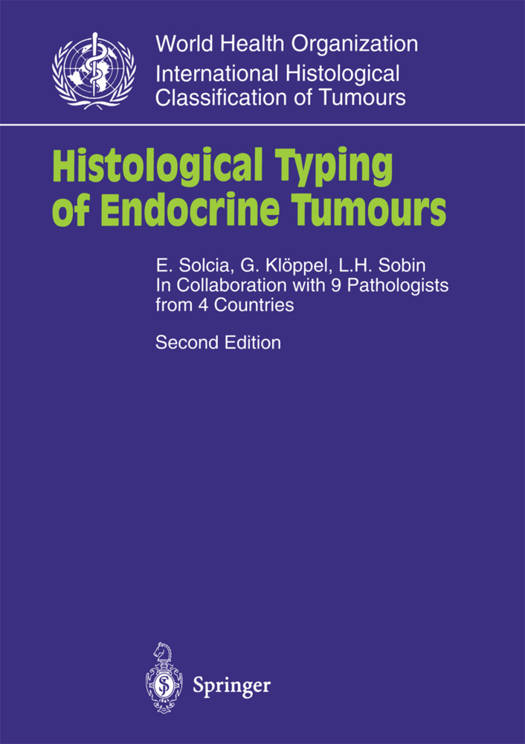 This second edition updates the "WHO Classification of Endocrine Tumours" proposed in 1980 and incorporates many new tumour entities and pertinent concepts that have developed since that time. It is the result of a collaborative effort between 9 pathologists from different countries, in addition to informal contributions and discussions by many other colleagues. In particular, efforts have been made to integrate into the fundamental backbone of the histologic classification a number of prognostic and functional parameters now essential for appropriate diagnosis and clinicopathologic evaluation of endocrine tumours.