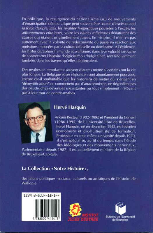 En politique, la résurgence du nationalisme issu de mouvements d'émancipation démocratique peut souvent être source d'excès quand la force des préjugés, les rivalités linguistiques poussées à l'excès, les affrontements ethniques, voire les haines religieuses dénaturent des causes qui étaient originellement justes. En histoire, il n'en va pas autrement avec la volonté de redécouverte du passé en réaction aux omissions imposées par la culture officielle ou dominante. A l'évidence, les historiographies flamande et wallonne, dans leur volonté farouche de contrecarrer l'histoire "belgiciste" ou "belgicaine", sont fréquemment tombées dans les travers qu'elles dénonçaient. Des mythes en remplacent souvent d'autres même si certains ont la vie plus longue. La Belgique et ses régions en sont abondamment pourvues, encore est-il souhaitable que les historiens de métier qui s'érigent en "démystificateurs" ne commettent pas d'anachronisme, ne dégonflent pas des baudruches devenues inexistantes ou tout simplement n'élèvent pas à leur tour de contre-mythes.