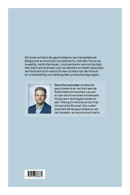Dit boek schetst de geschiedenis van het geldende Belgische economisch privaat recht, met een focus op huwelijk, verbintenissen, insolventie en vennootschap. Het dient als leidraad voor studenten en biedt naast een rechts historisch over zicht een schets van de inhoud en ontwikkeling van belangrijke juridische begrippen.
