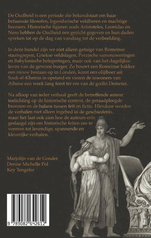 In deze bundel zijn we niet alleen getuige van Romeinse staatsgrepen, Griekse veldslagen, Perzische samenzweringen en Babylonische belegeringen, maar ook van het dagelijkse leven van de gewone burger. Zo bouwt een Romeinse bakker een nieuw bestaan op in Londen, komt een olijfboer uit Souk-el-Khemis in opstand en vieren de inwoners van Athene een week lang feest ter ere van de godin Demeter.