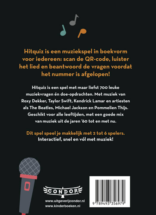 Hitquiz is het spel met muziekvragen die wat verder gaan dan alleen de naam van de artiest of het jaar van uitbrengen. Met muziek van Roxy Dekker, Taylor Swift en Kendrick Lamar, maar ook artiesten als The Beatles, Michael Jackson en Madonna. Geschikt voor alle leeftijden vanaf 9 jaar, door een mix van muziek uit de periode jaren ’60 tot en met 2025.