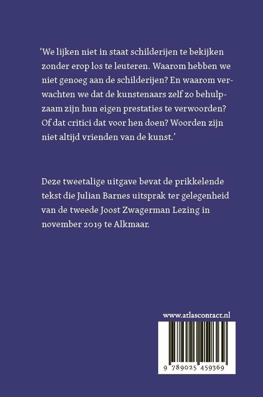 Deze tweetalige uitgave 'Hm, hé, ha: Kunst en woorden' bevat de prikkelende tekst die Julian Barnes uitsprak ter gelegenheid van de tweede Joost Zwagerman Lezing in november 2019 te Alkmaar. We lijken niet in staat schilderijen te bekijken zonder erop los te leuteren. Waarom hebben we niet genoeg aan de schilderijen? En waarom verwachten we dat de kunstenaars zelf zo behulpzaam zijn hun eigen prestaties te verwoorden? Of dat critici dat voor hen doen? Woorden zijn niet altijd vrienden van de kunst.'
