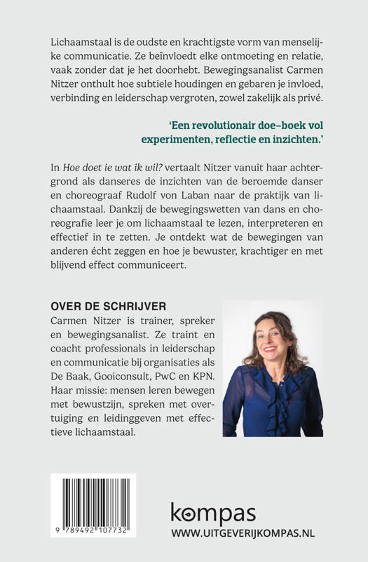 In Hoe doet ie wat ik wil? vertaalt Nitzer vanuit haar achtergrond als danseres de inzichten van de beroemde danser en choreograaf Rudolf von Laban naar de praktijk van lichaamstaal. Dankzij de bewegingswetten van dans en choreografie leer je om lichaamstaal te lezen, interpreteren en effectief in te zetten. Je ontdekt wat de bewegingen van anderen écht zeggen en hoe je bewuster, krachtiger en met blijvend effect communiceert.