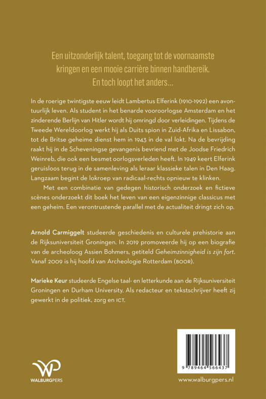 In de roerige twintigste eeuw leidt Lambertus Elferink (1910-1992) een avontuurlijk leven. Als student in het benarde vooroorlogse Amsterdam en het zinderende Berlijn van Hitler wordt hij omringd door verleidingen. Tijdens de Tweede Wereldoorlog werkt hij als Duits spion in Zuid-Afrika en Lissabon, tot de Britse geheime dienst hem in 1943 in de val lokt. Na de bevrijding raakt hij in de Scheveningse gevangenis bevriend met de Joodse Friedrich Weinreb, die ook een besmet oorlogsverleden heeft. In 1949 keert Elferink geruisloos terug in de samenleving als leraar klassieke talen in Den Haag. Langzaam begint de lokroep van radicaal-rechts opnieuw te klinken.
