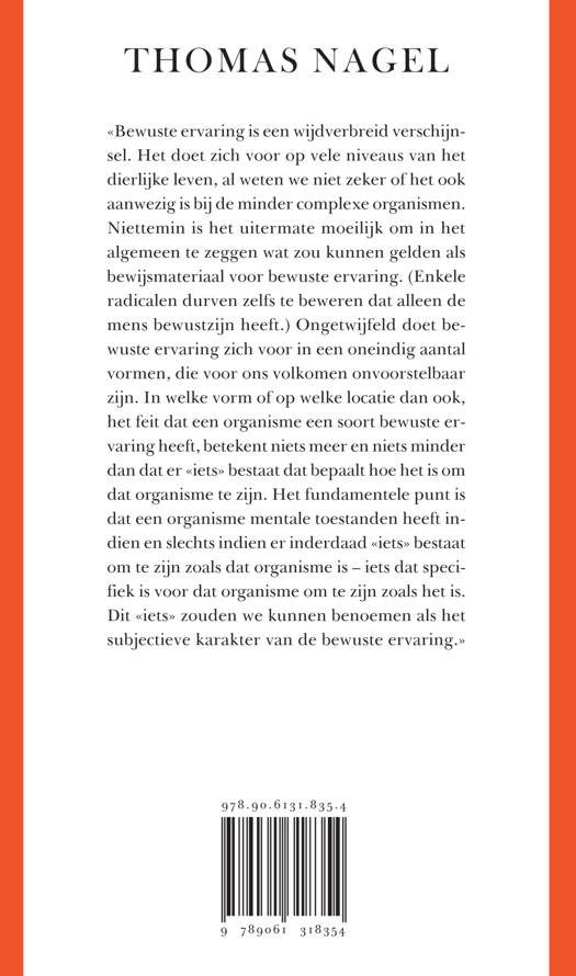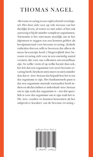 «Hoe is het om een vleermuis te zijn?» is een van de beroemdste en invloedrijkste filosofische essays van deze tijd. Toen de Thomas Nagel in 1974 zijn betoog publiceerde sloeg her in als een bom, en het is sindsdien de meest bediscussieerde bijdrage aan het debat over het aloude lichaam-geestprobleem gebleven. Speciaal voor het 50-jarig bestaan heeft Nagel deze nieuwe uitgave gemaakt, die is voorzien van een nieuwe inleiding en een nieuw essay met zijn visie op de betekenis van «Hoe is het om een vleermuis te zijn?» in het hedendaagse filosofische debat.