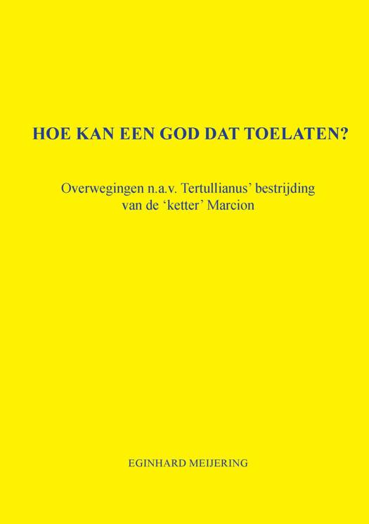 Bij het geloof in God komt ook telkens weer de wanhopige vraag op: ‘Hoe kan een goede en almachtige God het kwaad op de wereld toelaten?’ In de tweede eeuw kwam in de christelijke kerk een zekere Marcion naar voren met een nieuwe verkondiging: Er zijn twee goden, namelijk een schepper, die opzettelijk deze boze wereld heeft geschapen. Hij is de god van de joden. Gelukkig is er ook nog een liefdevolle God, die zich in Christus openbaart en ons uit de macht van de boze schepper wil bevrijden. Deze leer werd door de overige christenen fel bestreden, o.a. door Tertullianus. In dit boekje beschrijft Meijering het vinnige debat tussen Tertullianus en Marcion. Hij last regelmatig Uitweidingen in, waarin hij visies bespreekt die in latere tijden tot in het heden op deze kwesties naar voren zijn gebracht.