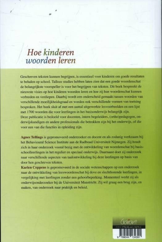 Geschreven teksten kunnen begrijpen, is essentieel voor kinderen om goede resultaten te behalen op school. Talloze studies hebben aangetoond dat een goede woordenschat de belangrijkste voorspeller is voor het begrijpen van teksten. Dit boek bespreekt de nieuwste visies op hoe kinderen woorden leren en hoe zij hun woordenschat kunnen verbreden en verdiepen. Daarbij wordt een onderscheid gemaakt tussen woorden van verschillende moeilijkheidsgraad en worden ook verschillende vormen van toetsing besproken. Het boek sluit af met een aantal uitgewerkte lesvoorbeelden en een lijst met nagenoeg 1700 woorden die voor leerlingen in het basisonderwijs belangrijk zijn. Deze publicatie is bedoeld voor leerkrachten, intern begeleiders, zorgleerkrachten, lerarenopleiders, (ortho)pedagogen, onderwijskundigen, taalkundigen, logopedisten en andere professionals die betrokken zijn bij het onderwijs, of die voor een van die functies in opleiding zijn.