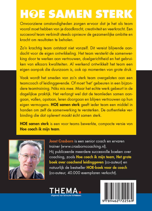 Vaak wordt het smeden van zo’n sterk team overgelaten aan een teamcoach of leidinggevende. Of moet ‘het’ gebeuren in een bijzondere teamtraining. Niks mis mee. Maar het echte werk gebeurt in de dagelijkse praktijk. Het verlangt wel dat ze samen aangaan, vallen, opstaan, leren doorgaan en blijven vertrouwen op hun eigen vermogens. HOE samen sterk geeft ieder team een middel in handen om zelf de samenwerking te versterken. De authentieke verbinding die dat oplevert maakt écht samen sterk.