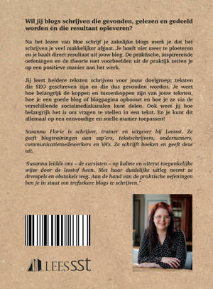 Wil jij blogs schrijven die gevonden, gelezen en gedeeld worden én die resultaat opleveren? Na het lezen van Hoe schrijf je zakelijk blogs merk je dat het schrijven je veel makkelijker afgaat, je hoeft niet meer te ploeteren en je haalt direct resultaat uit jouw blog. De praktische, inspirerende oefeningen, de theorie met voorbeelden uit de praktijk en de gastblogs van verschillende experts zetten je op een positieve manier aan het werk. Jij leert heldere teksten schrijven voor jouw doelgroep; teksten die SEO geschreven zijn en die dus gevonden worden. Je weet hoe belangrijk de koppen en tussenkoppen zijn van jouw teksten, hoe je een goede blog of blogpagina opbouwt en je weet hoe je ze via de verschillende sociale mediakanalen kunt delen. Ook weet jij hoe belangrijk het is om vragen te stellen in een tekst. En je kunt dit allemaal op een eenvoudige en snelle manier toepassen!