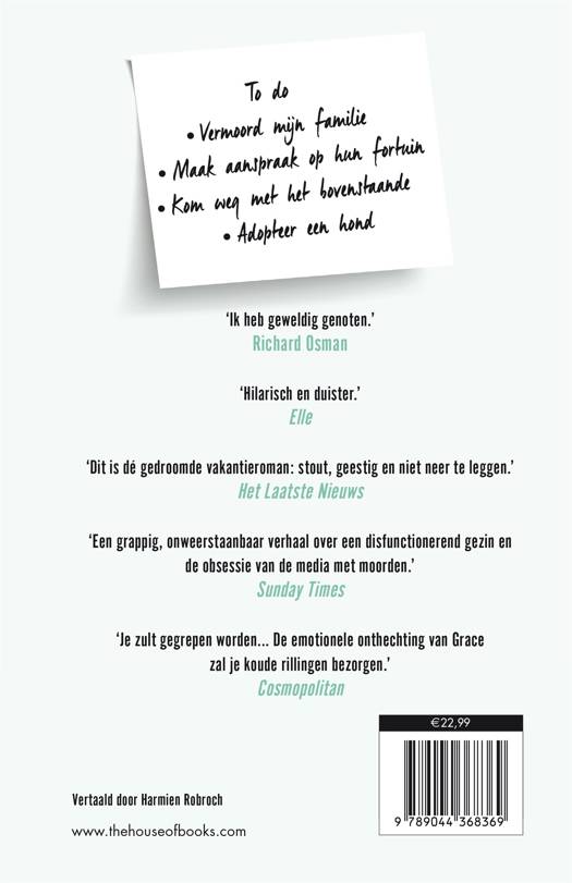 Ik heb meerdere mensen vermoord (sommige op gruwelijke wijze, andere heel koelbloedig) en toch zit ik nu in de gevangenis voor een moord die ik níét heb gepleegd. Als ik bedenk wat ik écht heb gedaan, vind ik het stiekem jammer dat niemand ooit zal weten wat voor complexe klussen het waren. Ik hoop er natuurlijk ongestraft mee weg te komen, maar ik stel me graag voor dat iemand ooit, als ik er allang niet meer ben, een oude kluis opent en deze bekentenis vindt. Mensen zouden van hun stoel vallen. Er is per slot van rekening vrijwel niemand ter wereld die kan begrijpen hoe iemand van achtentwintig doodleuk zes familieleden kan hebben vermoord, om vervolgens, zonder ook maar een greintje spijt, vrolijk verder te gaan met haar leven.