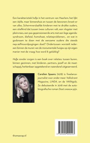 Een karakteristiek hofje in het centrum van Haarlem; het lijkt een idylle, maar binnenshuis en tussen de bewoners broeit er van alles. Schermverslaafde kinderen met te drukke ouders, een stiefkind dat tussen twee culturen valt, een vlogster met pleinvrees, een pas gepensioneerde arts met een empty agenda-syndroom, diefstal, homohaat, relatieproblemen… en wat in godsnaam te doen met de eenzame oudere die steeds nep-zelfmoordpogingen doet? Ondertussen worstelt iedereen binnen de muren van de monumentale huisjes op zijn eigen manier met de vraag: hoe word ik gelukkig? Hofje zonder zorgen is een boek over relaties: tussen buren, binnen gezinnen, met kinderen, partners, jezelf en de maatschappij, herkenbaar opgetekend en razendsnel uitgeserveerd.