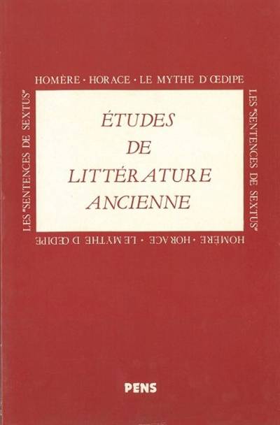 Les quatre textes rassemblés dans ce volume étudient respectivement les festins des prétendants et la relation festin-guerre dans l’Odyssée, l’opposition classique masculin-féminin qui se trouve modifiée dans les Odes d’Horace, la traduction latine de verbo des Sentences de Sextus par Ruffin et les origines du mythe d’Œdipe.