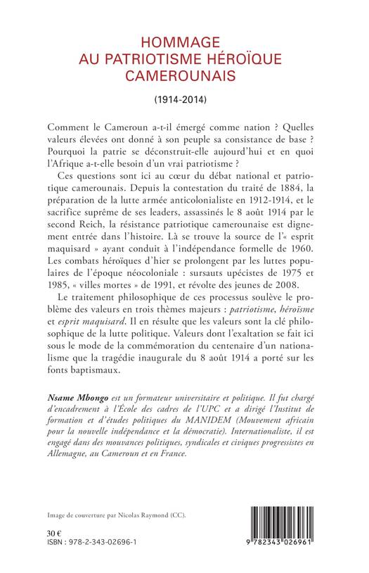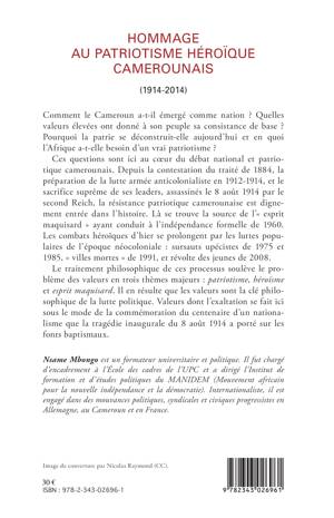 Le 8 août 1914, les leaders de la lutte armée anticolonialiste sont assassinés par le second Reich : la résistance patriotique camerounaise entre dignement dans l'histoire. Marqué par les combats héroïques du passé et les luttes populaires de l'époque néocoloniale, le Cameroun se construit entre patriotisme, héroïsme et esprit maquisard. Des valeurs qui se révèlent être la clé philosophique de la lutte politique et sont aujourd'hui commémorées à l'occasion du centenaire de la tragédie de 1914.