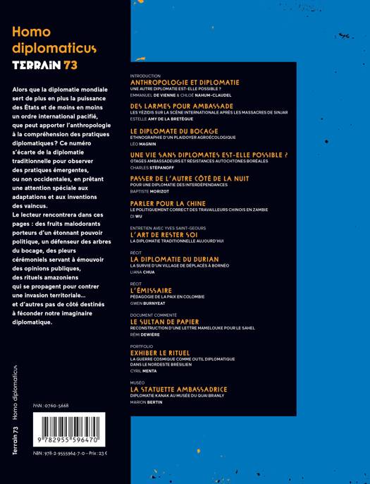 Ce numéro entend proposer une plongée dans des diplomaties parallèles, en accordant la primauté, selon la ligne éditoriale de la revue, aux études de cas et à l'ethnographie. Les doctrines diplomatiques y seront interrogées à la lumière des pratiques concrètes des acteurs, en partant du principe que la diplomatie est d'abord un art de la communication. Qui assure la fonction de diplomate dans les sociétés qui n'en disposent pas traditionnellement? Quel rapport (délégation, incarnation, etc.) le lie au collectif au nom duquel il parle? Quelles procédures de traduction met-il en oeuvre entre mondes langagiers, conceptuels et politiques hétérogènes? Qu'implique la multiplication des échelles désormais concernées par le jeu diplomatique? À quoi enfin la diplomatie s'oppose-t-elle? Dans l'optique de décoloniser cet art, une attention particulière sera portée à la diplomatie des vaincus. Ce sont en effet typiquement eux qui ont été contraints à la créativité au cours de l'histoire.