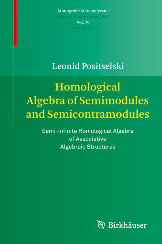 Preface.- Introduction.- 0 Preliminaries and Summary.- 1 Semialgebras and Semitensor Product.- 2 Derived Functor SemiTor.- 3 Semicontramodules and Semihomomorphisms.- 4 Derived Functor SemiExt.- 5 Comodule-Contramodule Correspondence.- 6 Semimodule-Semicontramodule Correspondence.- 7 Functoriality in the Coring.- 8 Functoriality in the Semialgebra.- 9 Closed Model Category Structures.- 10 A Construction of Semialgebras.- 11 Relative Nonhomogeneous Koszul Duality.- Appendix A Contramodules over Coalgebras over Fields.- Appendix B Comparison with Arkhipov's Ext^{\infty/2+*} and Sevostyanov's Tor_{\infty/2+*}.- Appendix C Semialgebras Associated to Harish-Chandra Pairs.- Appendix D Tate Harish-Chandra Pairs and Tate Lie Algebras.- Appendix E Groups with Open Profinite Subgroups.- Appendix F Algebraic Groupoids with Closed Subgroupoids.- Bibliography.- Index.