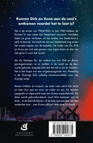 Als de Gestapo Els, de oudere zus van Dirk en Anna, gevangennemen, en er midden in de nacht op de deur wordt gebonkt, begrijpt Dirk dat het tijd is om te vluchten. Het is het begin van een angstaanjagende reis. Plotseling is de 13-jarige Dirk volledig verantwoordelijk voor zijn 6-jarige zusje. Samen trekken ze eropuit, op zoek naar eerst hun tante en later hun opa en oma, en vader en zus. Ze worden opgepakt en afgevoerd naar een Duitse wapenfabriek. Als deze wordt gebombardeerd, moet Dirk beslissen wat hij doet... in de fabriek blijven, of de hulp aanvaarden van een verdachte man... een Duitse officier. Wat moet hij doen?
