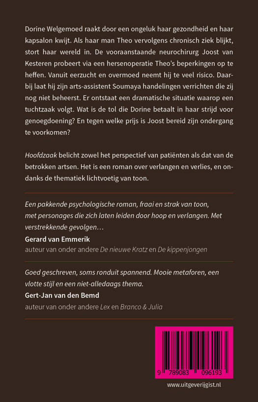 Hoofdzaak belicht zowel het perspectief van patiënten als dat van de betrokken artsen. Het is een roman over verlangen en verlies, en ondanks de thematiek lichtvoetig van toon.
