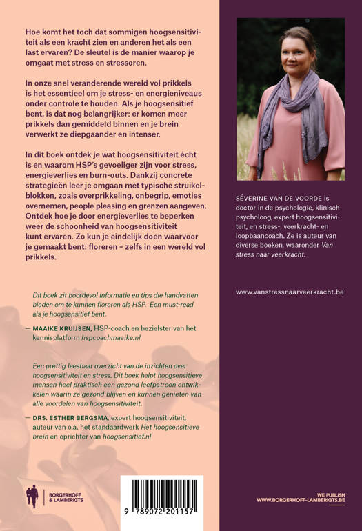 Hoe komt het toch dat sommigen hoogsensitiviteit als een kracht zien en anderen het als een last ervaren? De sleutel is de manier waarop je omgaat met stress en stressoren. In onze snel veranderende wereld vol prikkels is het essentieel om je stress- en energieniveaus onder controle te houden. Als je hoogsensitief bent, is dat nog belangrijker: er komen meer prikkels dan gemiddeld binnen en je brein verwerkt ze diepgaander en intenser. In dit boek ontdek je wat hoogsensitiviteit écht is en waarom HSP’s gevoeliger zijn voor stress, energieverlies en burn-outs. Dankzij concrete strategieën leer je omgaan met typische struikelblokken, zoals overprikkeling, onbegrip, emoties overnemen, people pleasing en grenzen aangeven. Ontdek hoe je door energieverlies te beperken terug de schoonheid van hoogsensitiviteit kunt ervaren. Zo kun je eindelijk doen waarvoor je gemaakt bent: floreren – zelfs in een wereld vol prikkels.