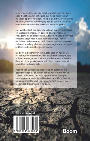 Justine van Lawick is psycholoog en systeem- en gezinstherapeut. Ze is een van de oprichters van het Lorentzhuis, centrum voor systemische therapie, training en consultatie in Haarlem. Met Hoop in actie vat zij de inzichten uit haar proefschrift samen in een toegankelijk en inspirerend boek.