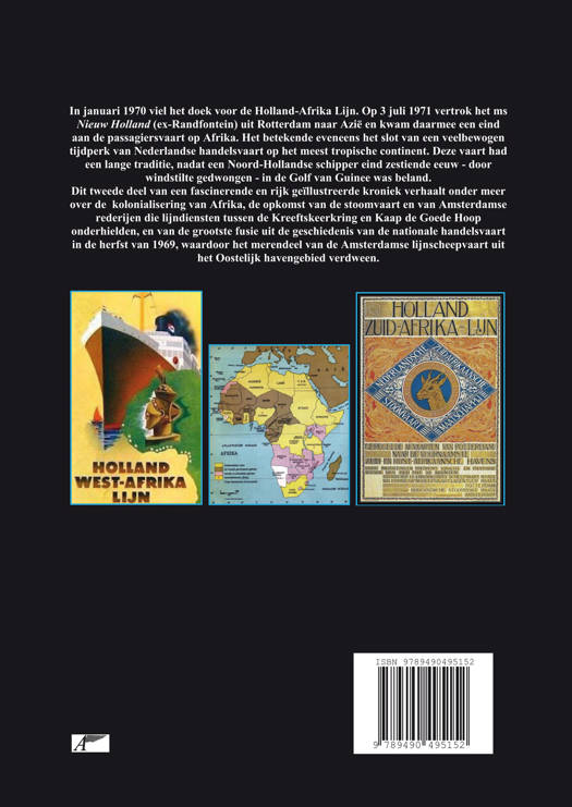 In januari 1970 viel het doek voor de Holland-Afrika Lijn. Op 3 juli 1971 vertrok het ms Nieuw Holland (ex-Randfontein) uit Rotterdam naar Azië en kwam daarmee een eind aan de passagiersvaart op Afrika. Het betekende eveneens het slot van een veelbewogen tijdperk van Nederlandse handelsvaart op het meest tropische continent. Deze vaart had een lange traditie, nadat een Noord-Hollandse schipper eind zestiende eeuw - door windstilte gedwongen - in de Golf van Guinee was beland. Dit tweede deel van een fascinerende en rijk geïllustreerde kroniek verhaalt onder meer over de kolonialisering van Afrika, de opkomst van de stoomvaart en van Amsterdamse rederijen die lijndiensten tussen de Kreeftskeerkring en Kaap de Goede Hoop onderhielden, en van de grootste fusie uit de geschiedenis van de nationale handelsvaart in de herfst van 1969, waardoor het merendeel van de Amsterdamse lijnscheepvaart uit het Oostelijk havengebied verdween.