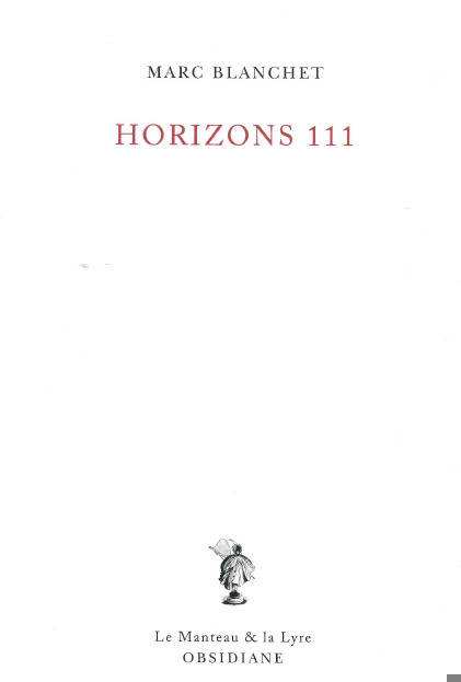 Ces poèmes sur l’horizon nous aident à regarder la ville, à mesurer nos limites et celles de nos rêves, ainsi que notre place dans le monde, tous actes dirigés loin devant nous. Nous appre-nons à les nommer avec humour et fantaisie. L’horizon nous humanise. « Un poème d’un mot, de deux puis de trois, jusqu’à cent onze mots. Ensuite decrescendo, un poème de cent-dix mots jusqu’à un poème d’un mot. Horizons 111 a été écrit de septembre 2021 à mai 2022. Il est né d’une commande de Jacques Vincey, met-teur en scène et directeur du Centre Dramatique National de Tours – Théâtre Olympia de 2014 à 2023. Qu’il en soit chaleu-reusement remercié. » C’est ainsi que Marc Blanchet présente son exploration du « grand bonhomme » d’horizon, comme l’écrivait en son temps Baudelaire des nuages. L’horizon est l’autre par excellence. Les enfants, ces poètes géomètres, l’ont toujours su qui d’instinct s’élancent le cœur haletant vers ce pays là-bas qui les requiert. Marc Blanchet s’exerce à le nombrer dans tous ses états : le nombre est le nom de l’univers. Il y a quelque chose de vertigi-neux à écrire : «1 horizon//2 l’horizon//3 dire l’horizon//4 ligne vierge droit devant//5 épousant la courbe du regard//6 L’horizon — un point de chute.//7 On lui tourne le dos : /il de-meure.//8 Il parle notre langue/sans dire un mot.//9 À notre image —/la bouche pleine/auprès du vide.//10 L’horizon/multiplie les directions./Nos corps pèsent à dis-tance. » Suivons le poète dans l’innombrable.