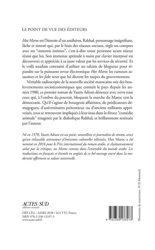 Véritable radioscopie de la nouvelle société marocaine née des bouleversements socioéconomiques que connaît le pays depuis les années 1980, ce premier roman de Yassin Adnan dénonce avec verve tous ceux qui, à l'ombre du pouvoir, bloquent la marche du Maroc vers la démocratie. Qu'il s'agisse de bourgeois affairistes, de prédicateurs démagogues, d'universitaires prétentieux ou d'anciens militants apprivoisés, tous se retrouvent impliqués à leur insu dans la féroce "comédie animale" imaginée par le diabolique Rahhal, et brillamment restituée par l'auteur.