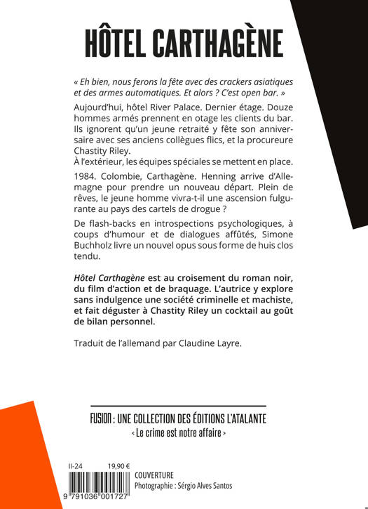 Hôtel Carthagène est au croisement du roman noir, du film d'action et de braquage. L'autrice y explore sans indulgence une société criminelle et machiste, et fait déguster à Chastity Riley un cocktail au goût de bilan personnel.