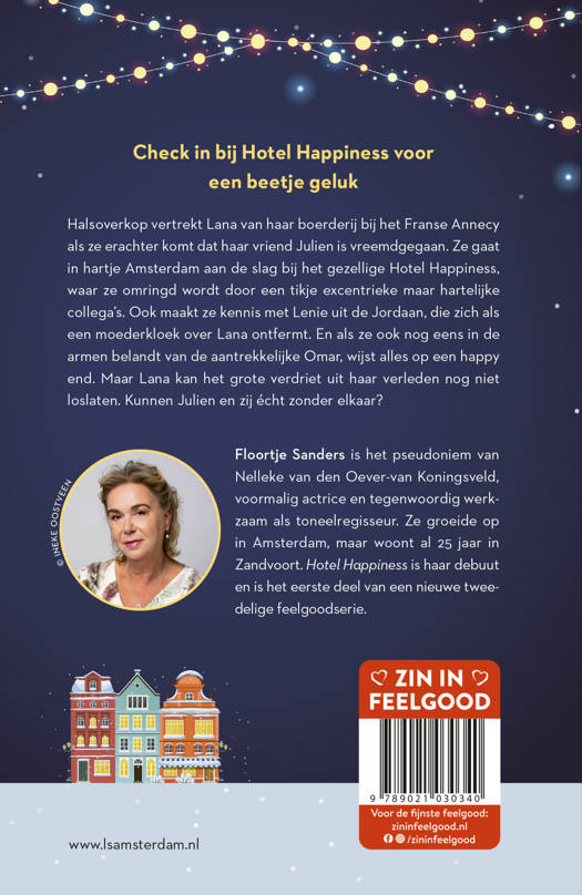 Hotel Happiness is het eerste deel van een nieuwe tweedelige feelgoodserie van Floortje Sanders. In deze serie probeert Lana opnieuw haar geluk te vinden in Amsterdam.